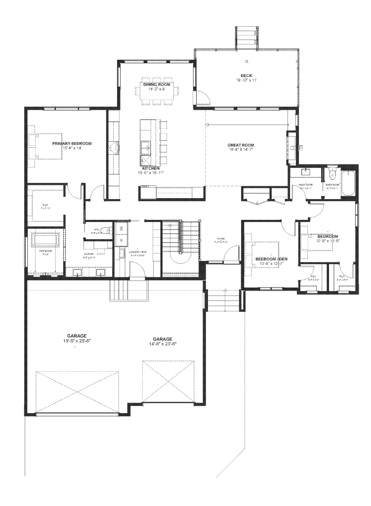 This modern Showhome features a striking exterior of crisp white stucco, smooth concrete panels, and warm wood-look vertical siding. Inside, vaulted ceilings and large windows flood the home with natural light, highlighting the rich hardwood floors and dark, refined accents. Thoughtful wood touches are woven throughout the interior, adding warmth and texture to the sleek, modern design.